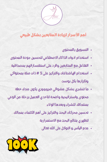 الكورس المجاني هاد مصمم خصيصًا لأي مدربة، خبيرة، أو صاحبة مشروع حابة تكبر حسابها على إنستغرام بشكل طبيعي ومن دون ولا شي إعلانات!